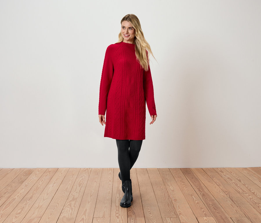Pletené šaty s copánkovým vzorem, červená