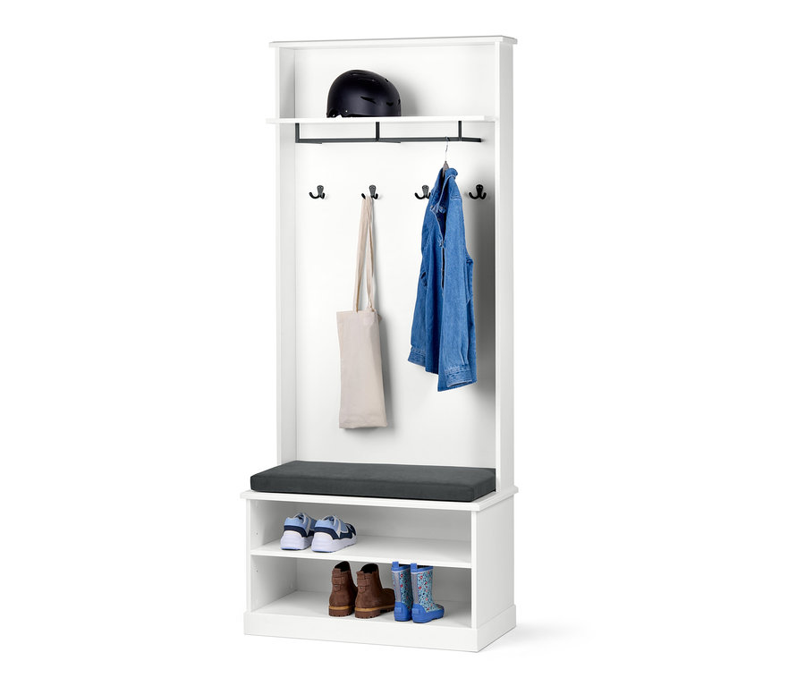 - Nabízí doplňkové odkládací plochy a kompaktní úložný prostor v předsíni nebo vstupní hale