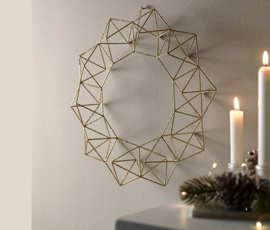 - Dekorativní věnec v elegantní, třpytivé zlaté barvě