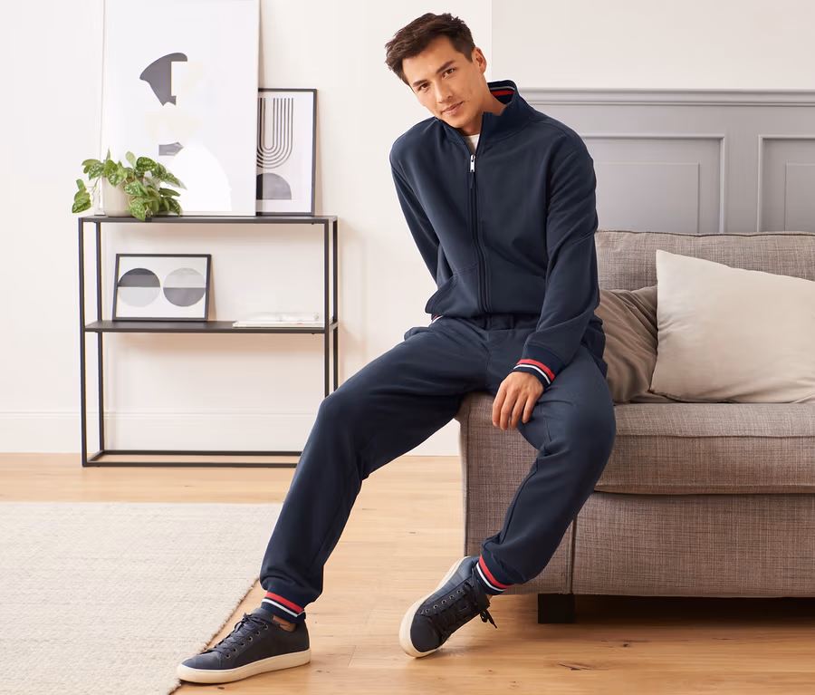• Žebrované náplety s kontrastním proužkem na koncích nohavic