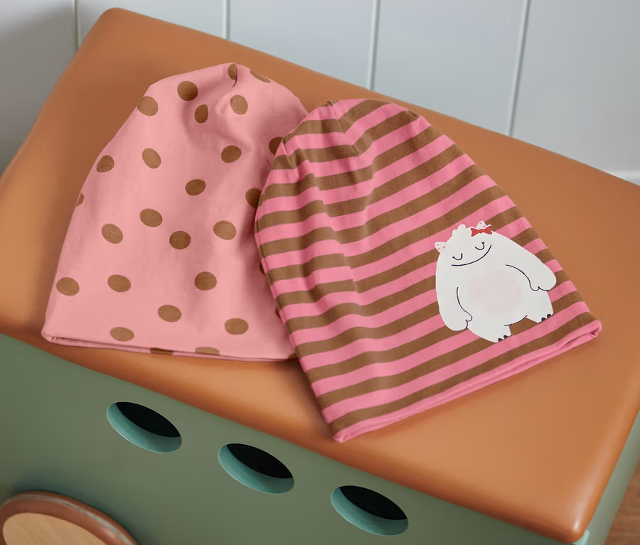 Čepice, 2 ks, růžová a hnědá