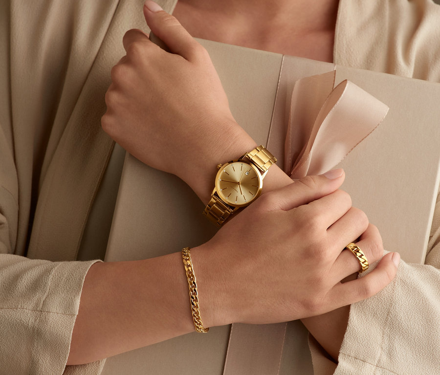 - Mosaz, pozlacená 23karátovým zlatem