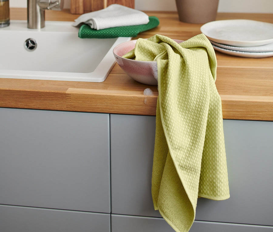 - K výrobě těchto utěrek na nádobí byly zpracovány PET lahve.