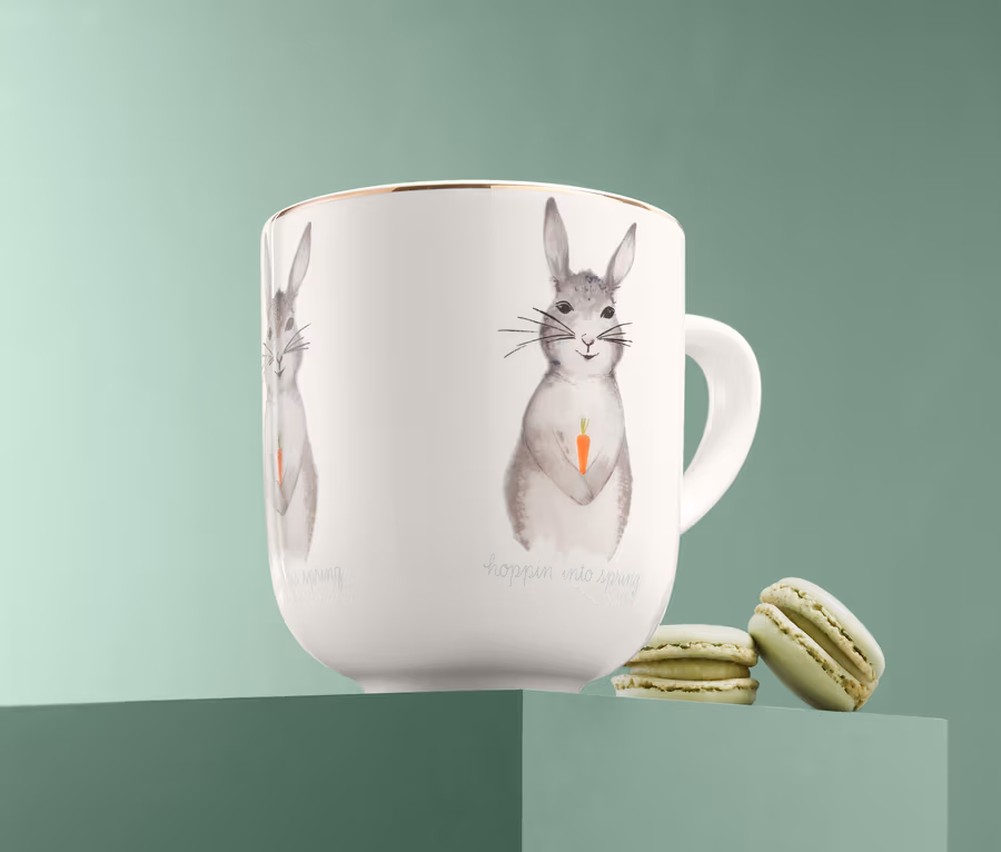 - Dekor zlaté barvy s barevným velikonočním motivem ve vzhledu akvarelové malby a s nápisem