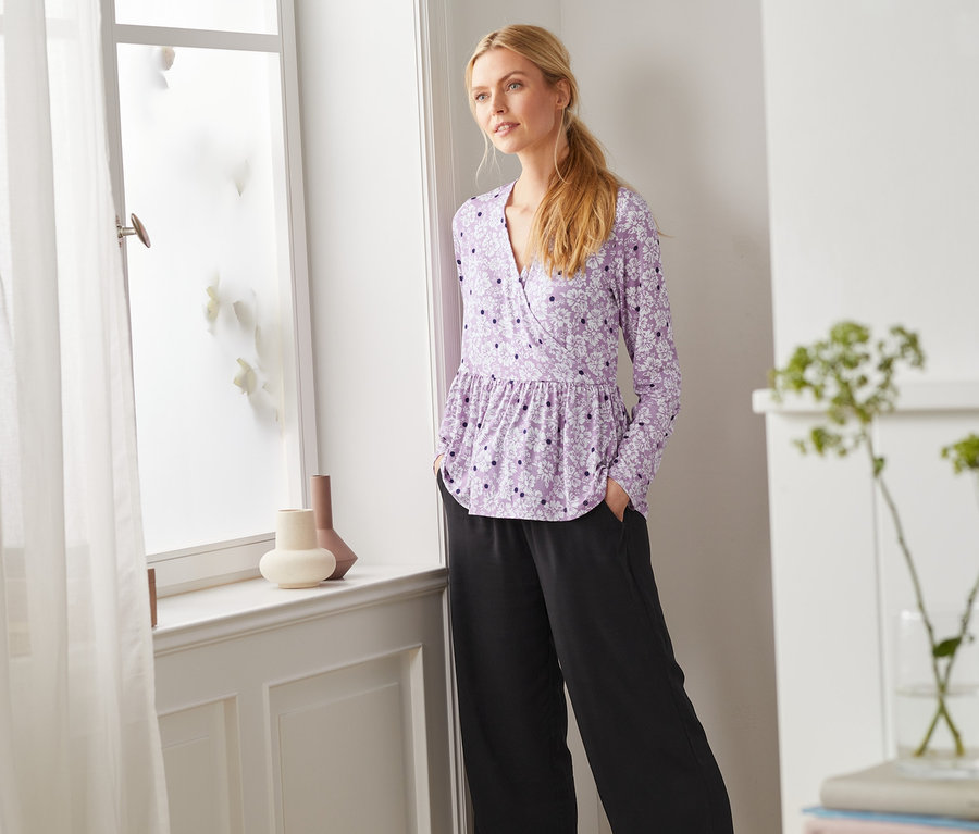 Super jako tričko na kojení klidně hned po porodu. Řasení schová i bříško. Škoda, že Tchibo nedělá víc střihů, ve kterých se dá