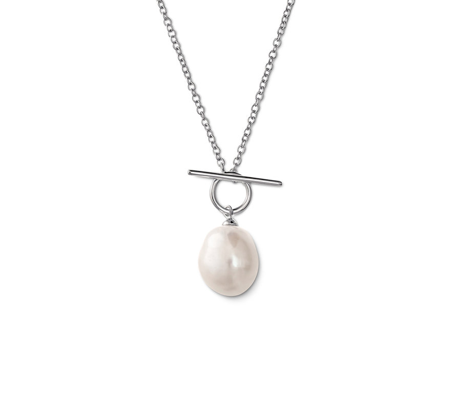 Náhrdelník, rhodiované stříbro 925/1000, s uměle pěstovanou sladkovodní perlou