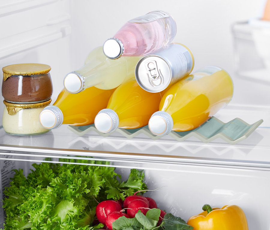 - Pomůcka na stohování láhví a plechovek – úspora místa při skladování v lednici bez sklouzávání a cinkání