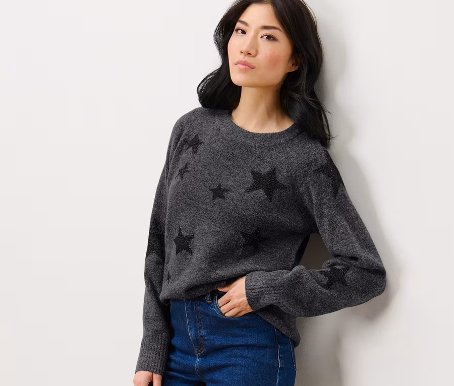 - Tmavě šedá s melírem a černými třpytivými hvězdami