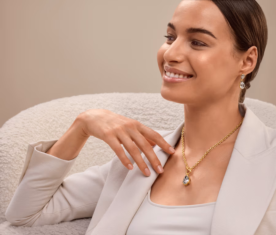 • Přívěsek ve tvaru kapky se skleněným kamínkem s fasetovým brusem