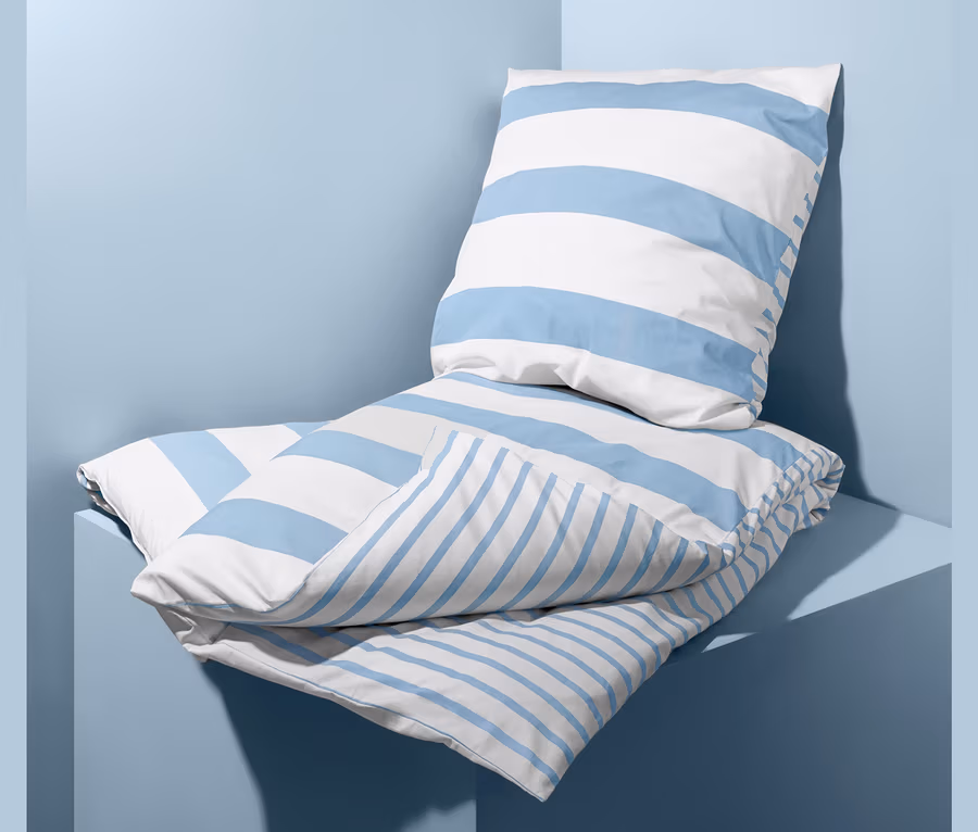 Oboustranné povlečení vnese do ložnice vždy příjemnou změnu, v tomto případě díky různě širokým proužkům v nadčasových námořnických barvách. Kromě krásného vzhledu ale okouzluje i příjemně měkkým, hladkým, lehkým perkálem vyrobeným z jemné, hustě tkané bavlny z ekologické produkce. Díky tomu vyrovnává teploty a dobře saje, takže je ideální i na teplejší noci. Povlaky jsou opatřené zapínáním na zip, takže se rychle a snadno navlékají.