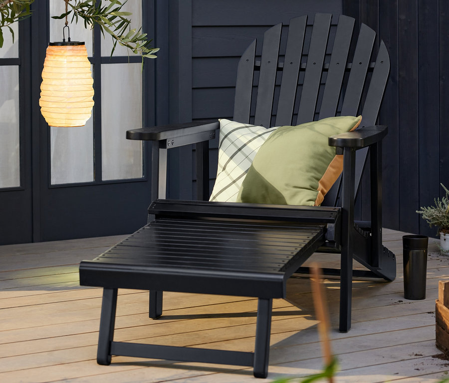 Zahradní křeslo Adirondack s výsuvnou podnožkou, černé