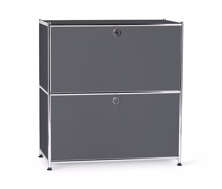 Kovová odkládací skříňka CN3, nízká, s výklopnými dvířky, šedá