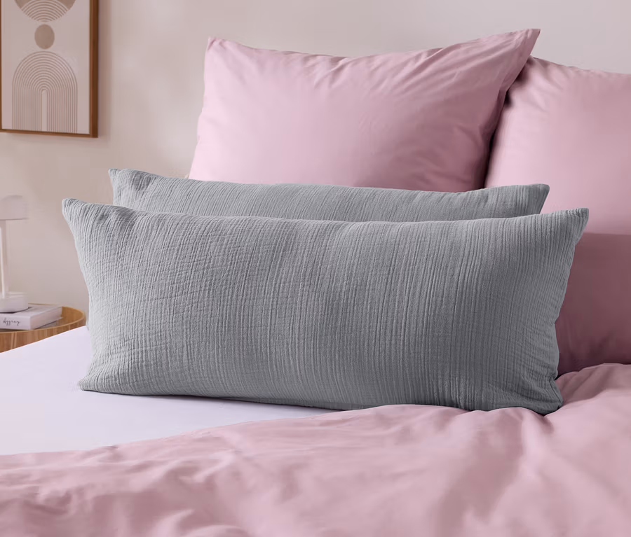 Mušelínové povlaky na polštář, 2 ks, šedá, cca 80 x 40 cm
