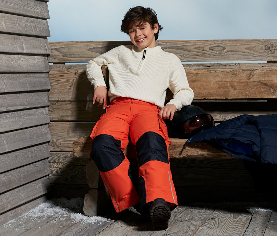 - Pas nastavitelný do šířky, zpracovaný s poutky na opasek – ideální, přizpůsobitelné dětské kalhoty na zimní sporty