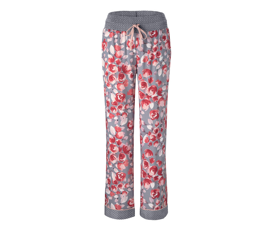 Kdo chce relaxovat v poklidu domova, potřebuje kromě času samozřejmě také správné oblečení – a tyto pohodlné kalhoty s elastickým žabkovaným lemem a šňůrkou na zavazování jsou perfektní na příjemně strávený volný čas. Kalhoty s širokými nohavicemi jsou vyrobené z lehce splývavé tkané viskózy, takže jsou velmi příjemné na tělo.