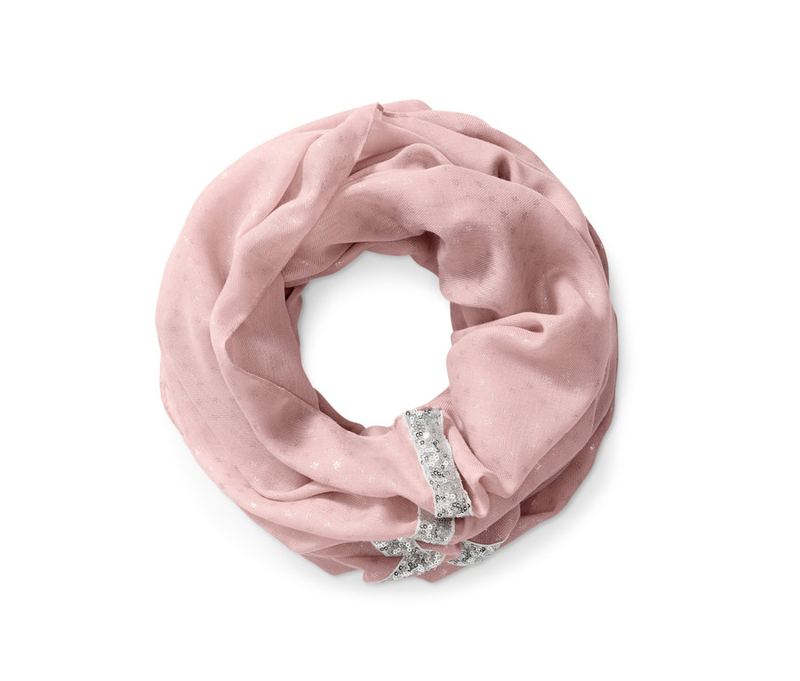 Tato růžová kruhová šála je tou správnou volbou, pokud chcete módně okořenit nějaký jednoduchý outfit. Díky dekorativním proužkům z pajetek a stříbrnému potisku s motivem hvězd působí tato šála sladce a luxusně. Zatímco lehký a jemný tkaný materiál přináší žádané pohodlí, jednotná velikost garantuje, že šála padne zaručeně každému.