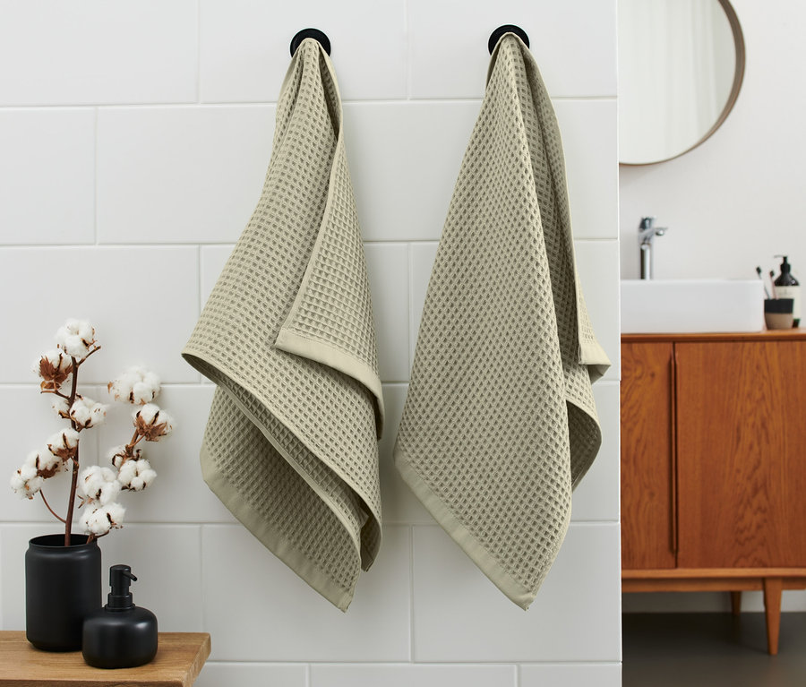 Prémiové ručníky z vaflového piké 2 ks, pískově zelená
