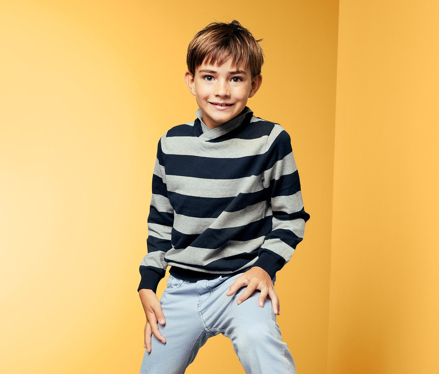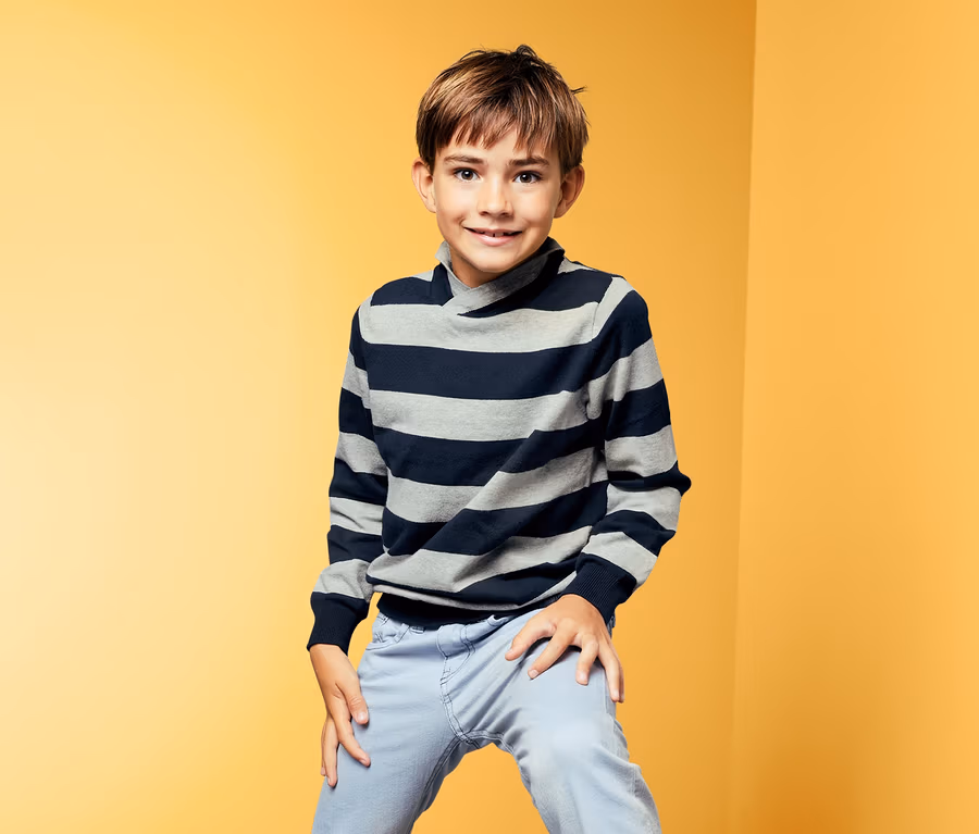 Módní look a úžasná pohodlnost: tento svetr z jemné pleteniny se díky svému stylovému šálovému límci určitě rychle zařadí mezi favority v dětském šatníku. Materiál je díky vysokému podílu bavlny vysloveně příjemný na tělo. Svetr se žebrovanými náplety na rukávech a spodním lemu navíc příjemně sedí na těle.
