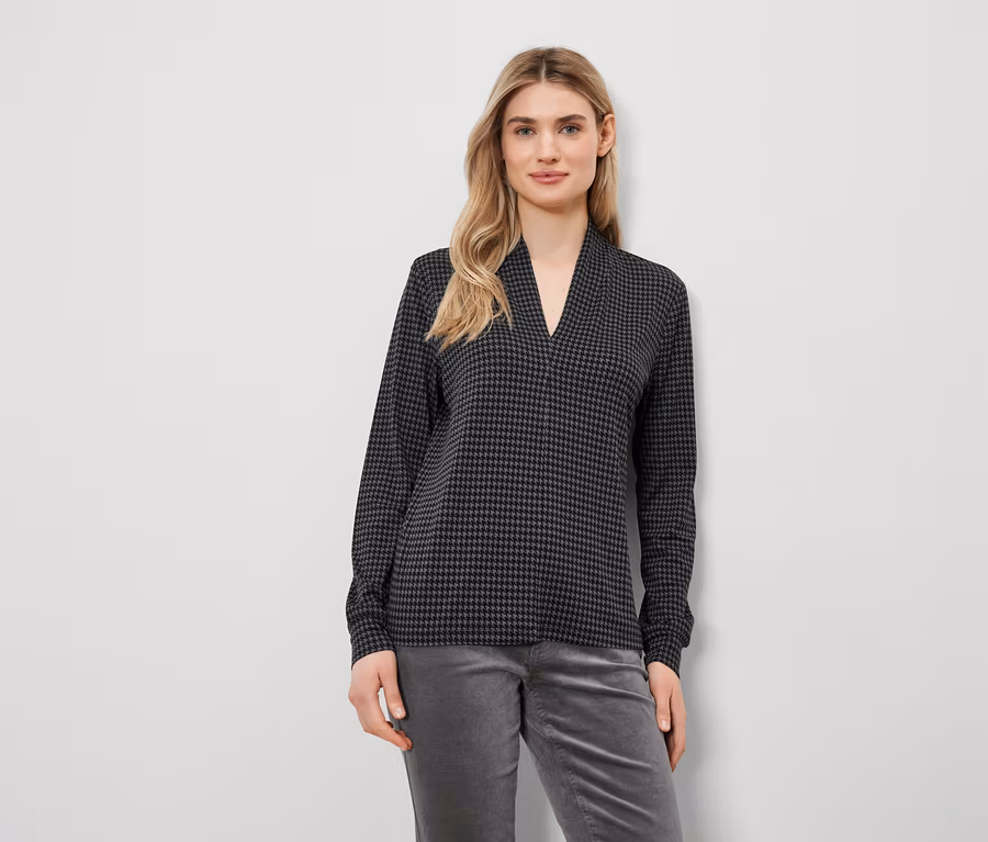 Halenkové triko s výstřihem do V, kohoutí stopa