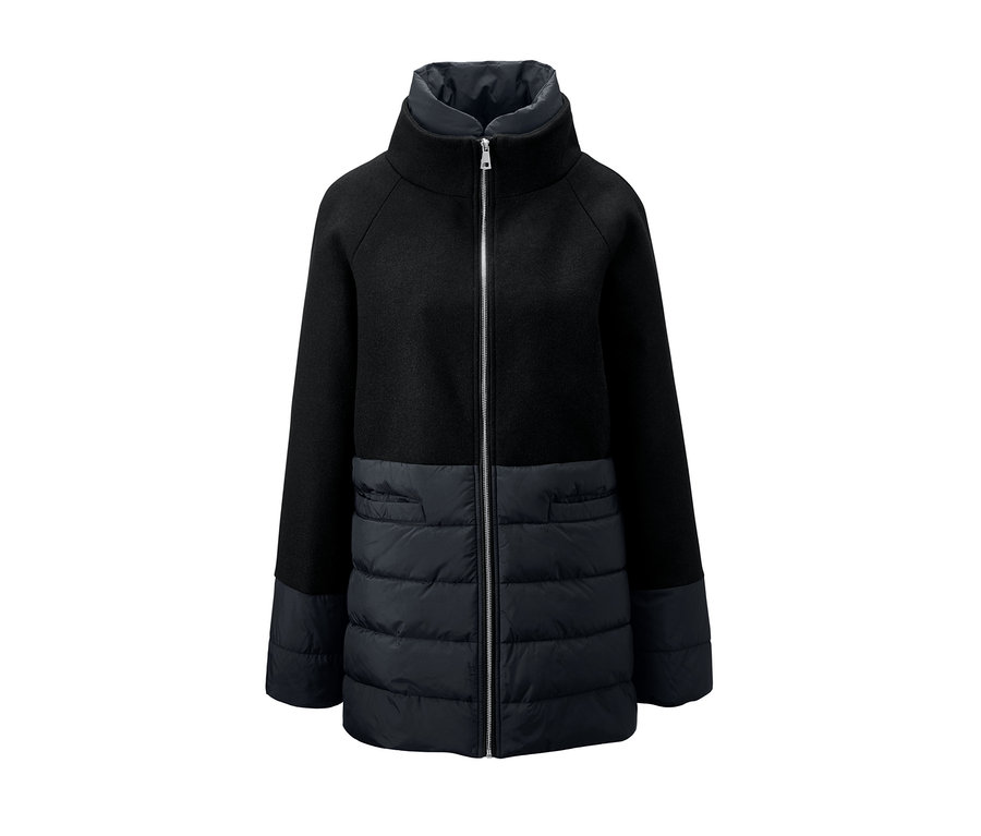 Hřejivý jako péřová bunda, pohodlný jako zimní kabát: tento outdoorový kabát je vyrobený z hřejivého materiálu s podílem vlny a ve spodní části má měkké hřejivé vatování. Kabát má vatováním podšitý stojáček i lemy rukávů. Dvě boční šikmé kapsy nabízejí prostor na smartphone i na studené ruce.