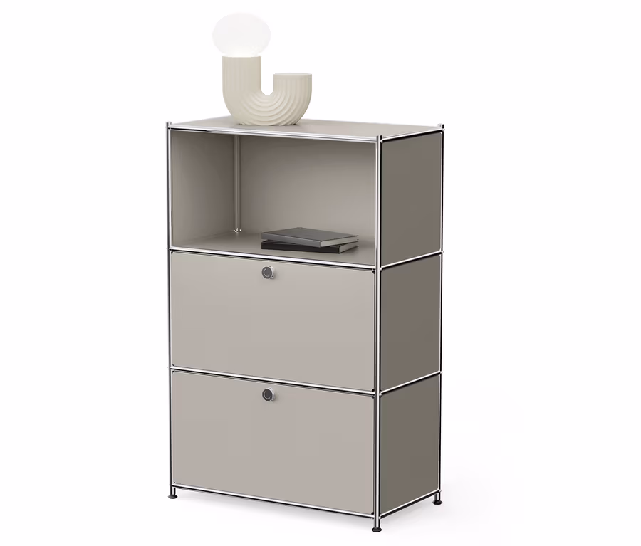 Komoda kovová »CN3« se 2 výklopnými dvířky, světle šedá