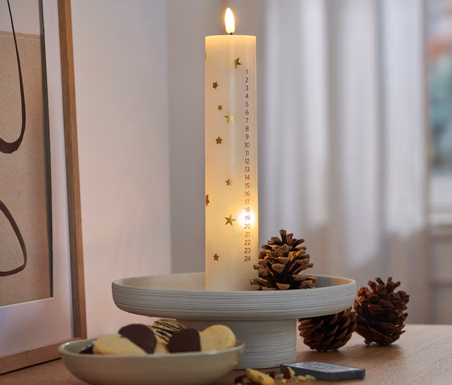 Svíčka s adventním kalendářem s LED, z pravého vosku
