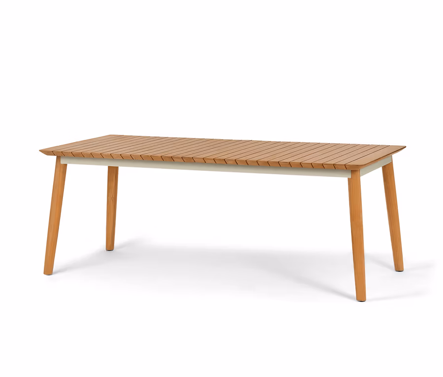 Zahradní stůl z kvalitního masivního teakového dřeva s certifikací FSC® je díky vysokému přírodnímu obsahu olejů obzvlášť odolný proti UV záření i povětrnostním vlivům. Díky chráničům podlahy jej lze postavit i na choulostivější typ podlahy.