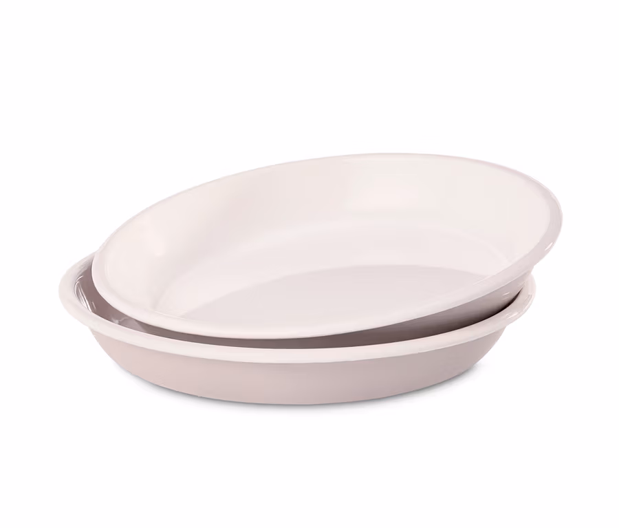 Smaltované nádobí je odolné, a přitom nenáročné na údržbu. Jako tyto dva talíře s trojnásobně smaltovaným povrchem, který je odolný proti pořezání a poškrábání, a navíc je chuťově a pachově neutrální. Talíře mají vysoký okraj a jsou vhodné do trouby – jsou ideální na ohřívání nebo udržování pokrmů v teple. Můžete je použít k servírování studených i teplých jídel. Navíc jsou – stejně jako naše ostatní produkty z této řady – odolné proti korozi, takže jsou vhodné i k venkovnímu použití.