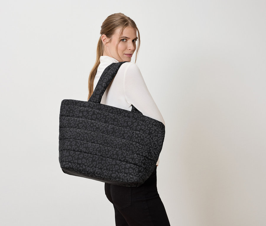 • Nákupní taška s moderním celoplošným leopardím potiskem v tonální barvě