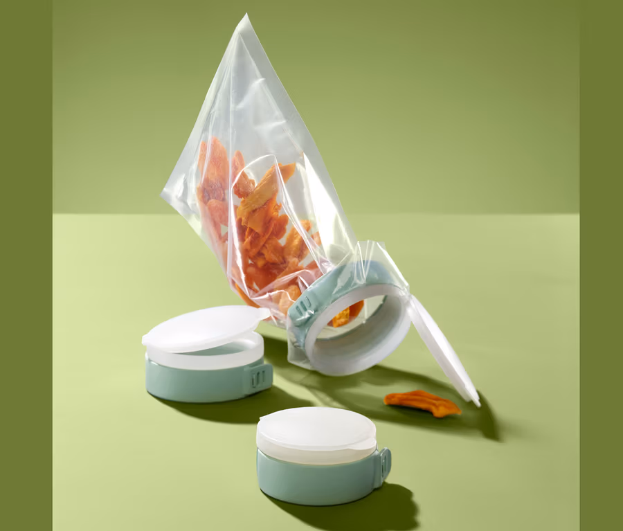 Obsah sáčku zůstane déle čerstvý, když se dá sáček dobře uzavřít. S tím vám mohou pomoci tyto chytré kuchyňské pomůcky. Stačí otvor sáčku ovinout kroužkem a ohrnout. Sáček tak bude mít opakovaně uzavíratelný otvor a aroma jeho obsahu se perfektně uchová.
