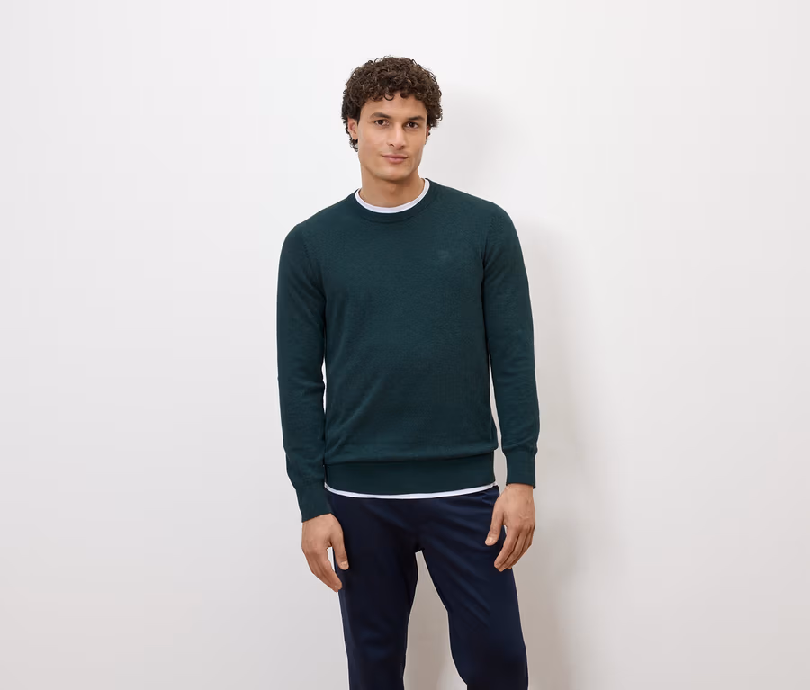 - Žebrované náplety na výstřihu, koncích rukávů a spodním lemu