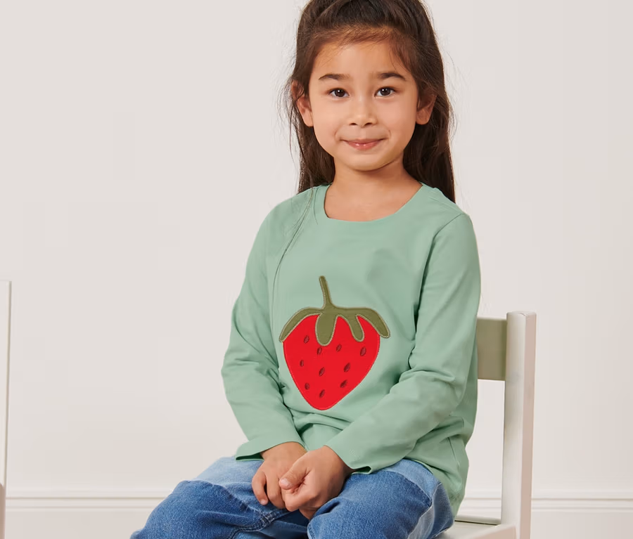 - Košile s dlouhým rukávem: 1x s jahodovou aplikací, 1x s jahodovou výšivkou.