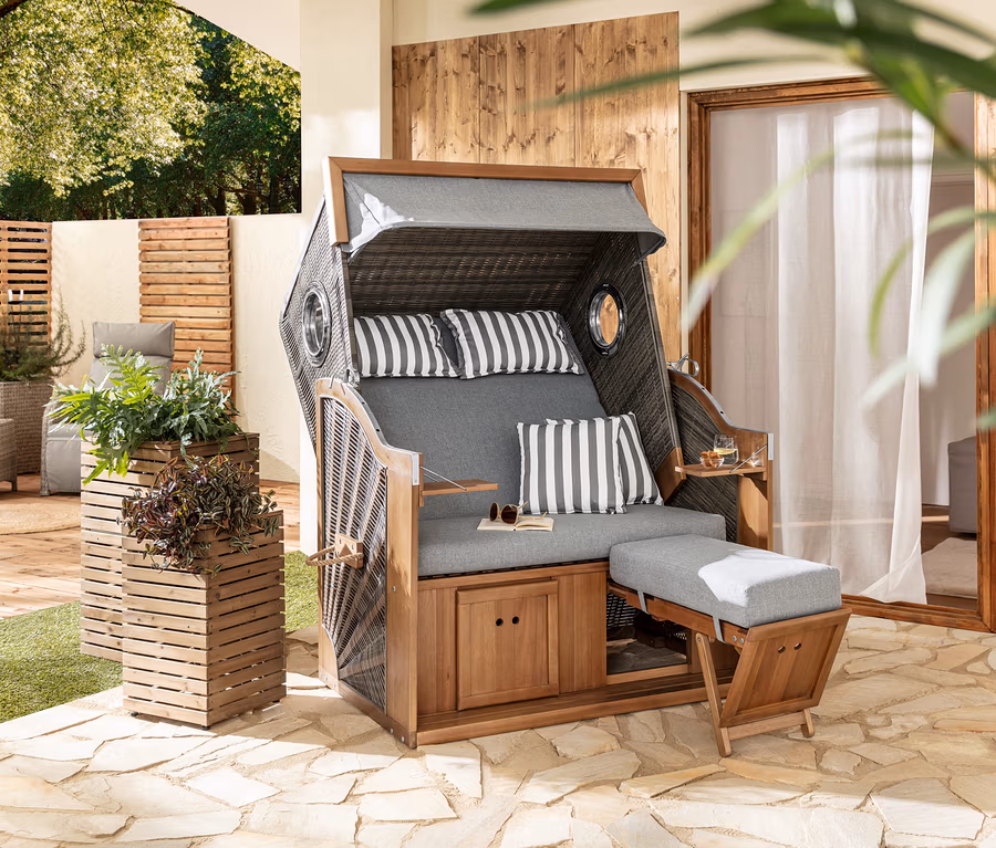 - Odolný polyratanový výplet na vnější straně, uvnitř s mezivrstvou pro optimální ochranu před deštěm a větrem