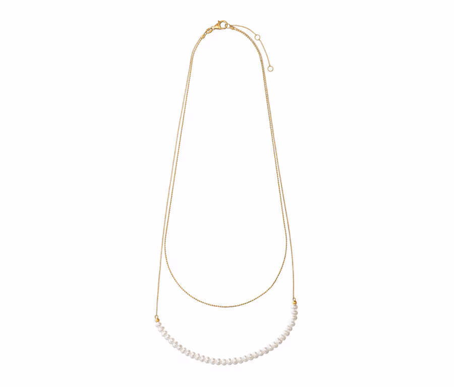Vrstvený náhrdelník, stříbro 925/1000 pozlacené 23karátovým zlatem, s uměle pěstovanými sladkovodními perlami