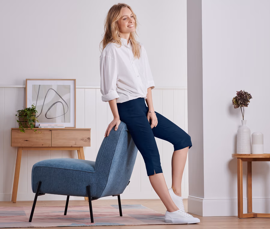 Bengalínové kalhoty v 3/4 délce, námořnicky modré