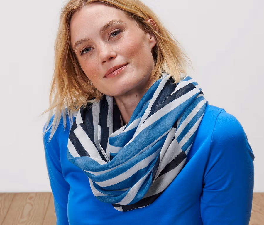 Krémově bílé, azurově modré a tmavě modré pruhy