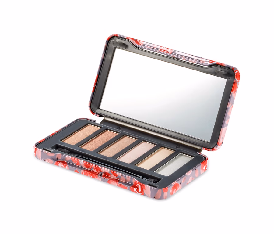 Perfektní make-up vždy po ruce: tato paleta očních stínů obsahuje šest decentních tělových tónů s jemným hedvábným leskem, takže budete mít k dispozici vhodný odstín pro každý případ. Stíny jsou vhodné pro každý typ pleti a lze je nanášet pomocí oboustranného aplikátoru. Dóza z kovu má na vnější straně hezký květinový potisk a na vnitřní straně zrcátko, které pomáhá při nanášení líčidel.