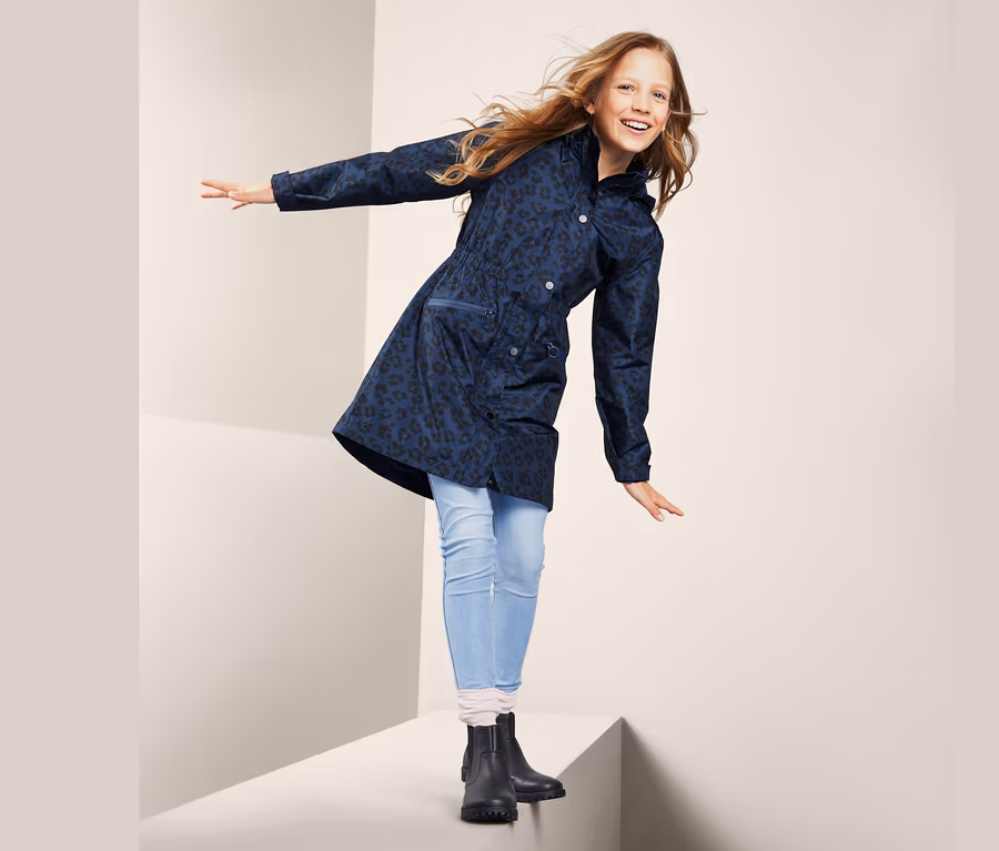 Dětská bunda nabízí spoustu praktických funkcí: reflexní prvky na zadní straně zajišťují optimální viditelnost, pas se stahováním na gumu na vnitřní straně perfektně sedí a dvě nepromokavé kapsy na zip na přední straně nabízejí suchý prostor na různé drobnosti. Odnímatelná kapuce zaručuje dostatečnou flexibilitu, stejně tak jako konce rukávů nastavitelné do šířky. Oblast trupu je podšitá hřejivým mikrofleecem, zatímco rukávy jsou s taftovou podšívkou – pro větší komfort při oblékání a svlékání.