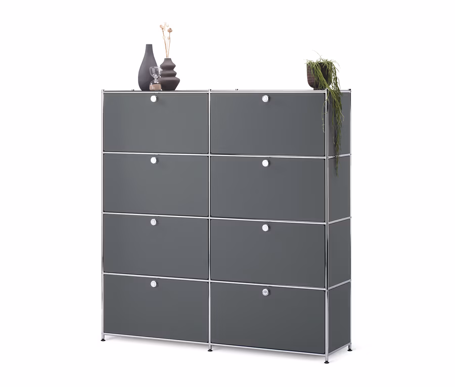 Vysoká skříňka CN3 s 8 výklopnými dvířky, šedá