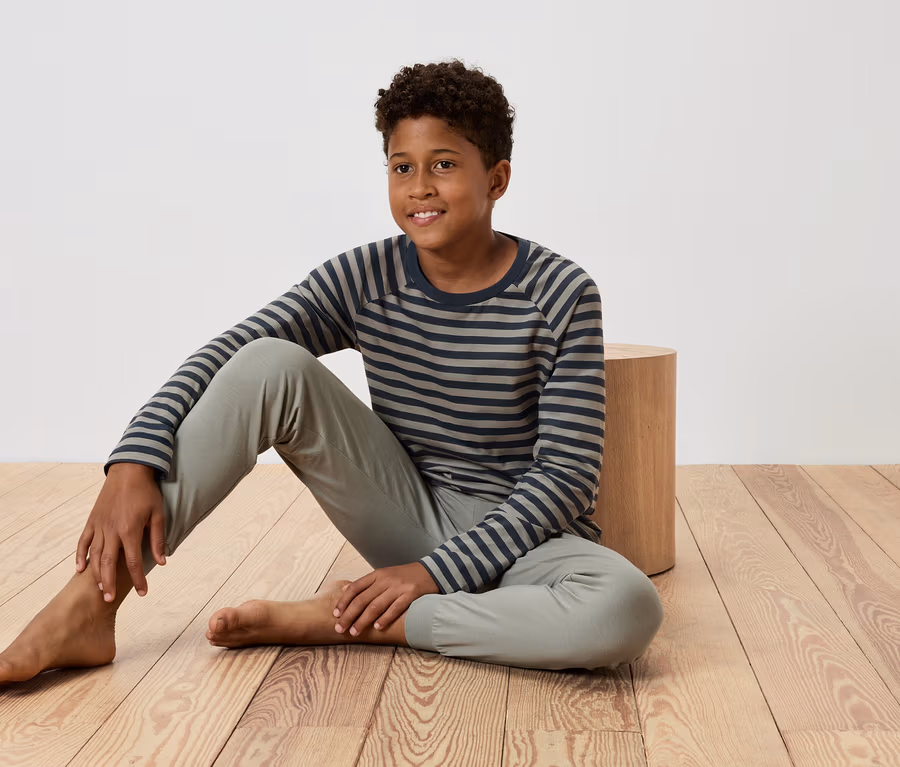 - 1x horní díl: proužky v olivově zelené a tmavě modré barvě, kalhoty: olivová zelená