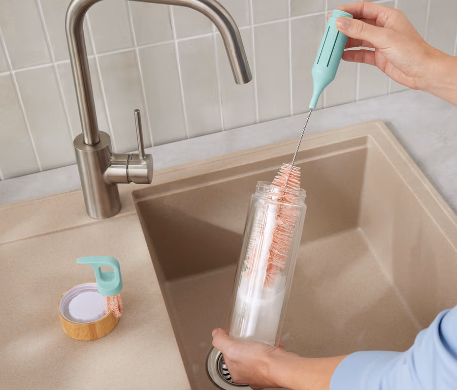 • Hlavice kartáče s pružným koncem – přizpůsobí se různým tvarům láhví a sklenic