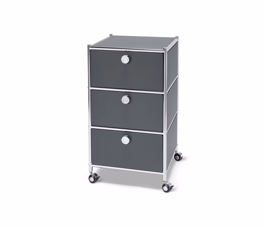 Kontejner na kolečkách CN3 se 3 zásuvkami, šedý