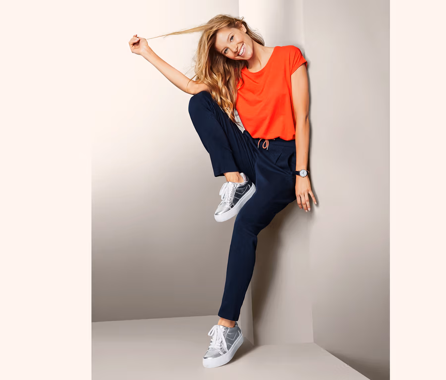 Tepláky kromě ležérního vzhledu bodují i vysokým komfortem nošení. Měkká, elastická interloková pletenina je nádherně pohodlná a elastický pas se nezařezává. Navíc je s tunýlkovým stahováním a šňůrkou na zavazování, takže jej lze perfektně přizpůsobit do šířky. Podíl elastanu zaručuje, že tepláky vyrobené z materiálu s biobavlnou dobře drží tvar a perfektně sedí.