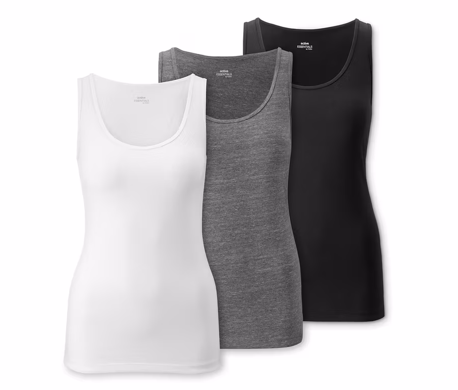 Hop, nebo top? V tomto případě třikrát top, protože toto základní oblečení nenechává žádná přání nesplněna. Všechny tři topy jsou vyrobené z materiálu s vysokým podílem biobavlny a díky obsahu elastanu dobře drží tvar, a přitom nijak neomezují v pohybu. Topy mají mírně projmutý střih a díky vysokému podílu bavlny jsou obzvlášť příjemné na tělo.
