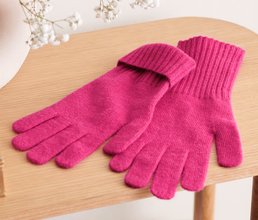 Pletené rukavice s vlnou, růžové