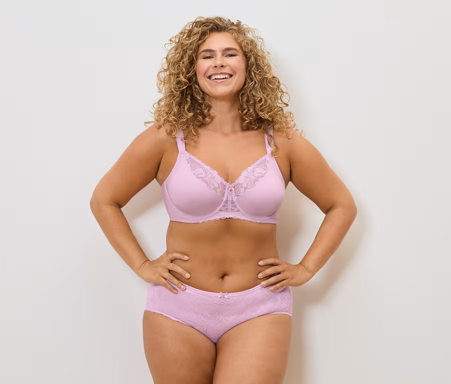 - Speciální střih – opticky zmenšuje prsa o 1 velikost košíčků