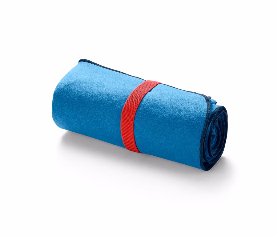 Na sušení, ležení a relaxaciIdeální na cesty a sport: Málokterá osuška je tak přenosná. Je vyrobena z mimořádně savého a rychleschnoucího mikrovlákna a lze ji složit do velmi malých rozměrů. Lehkou a měkkou osušku z mikrovlákna lze během okamžiku srolovat a zajistit elastickým poutkem. Poutko lze také použít k zavěšení rozložené osušky.