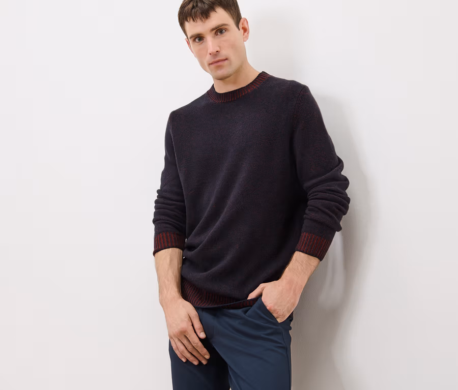 - Kontrastní náplety díky dvoubarevnému úpletu