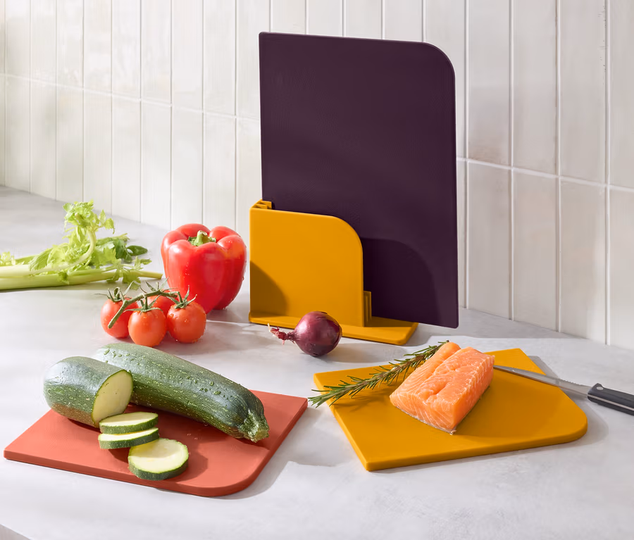 Prkénka: 1x velké prkénko lilková, 1x malé prkénko terakotová, 1x malé prkénko žlutá