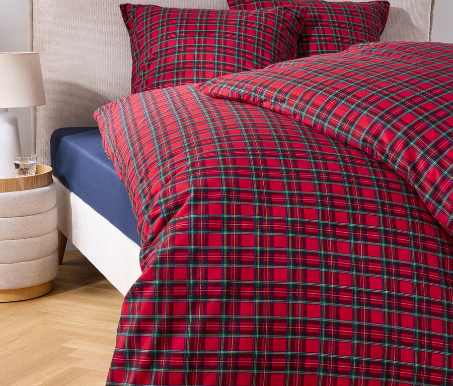 Povlečení z biberu, kostkovaný vzor v červené barvě, standardní velikost